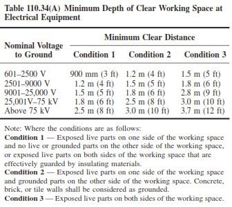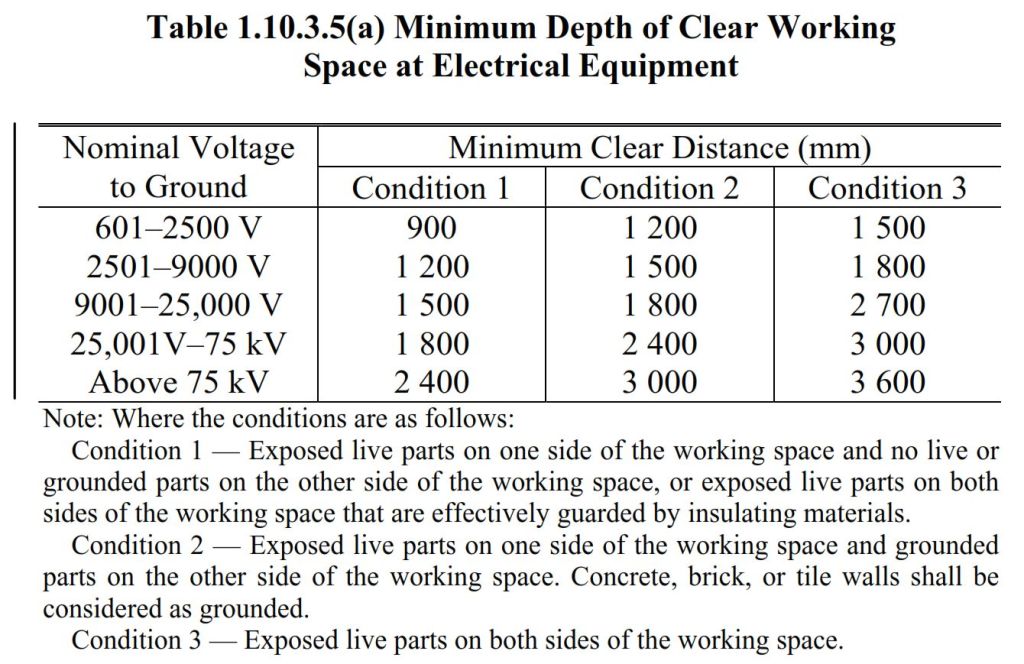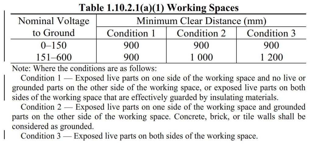 Required working space at the front of electrical equipment:
